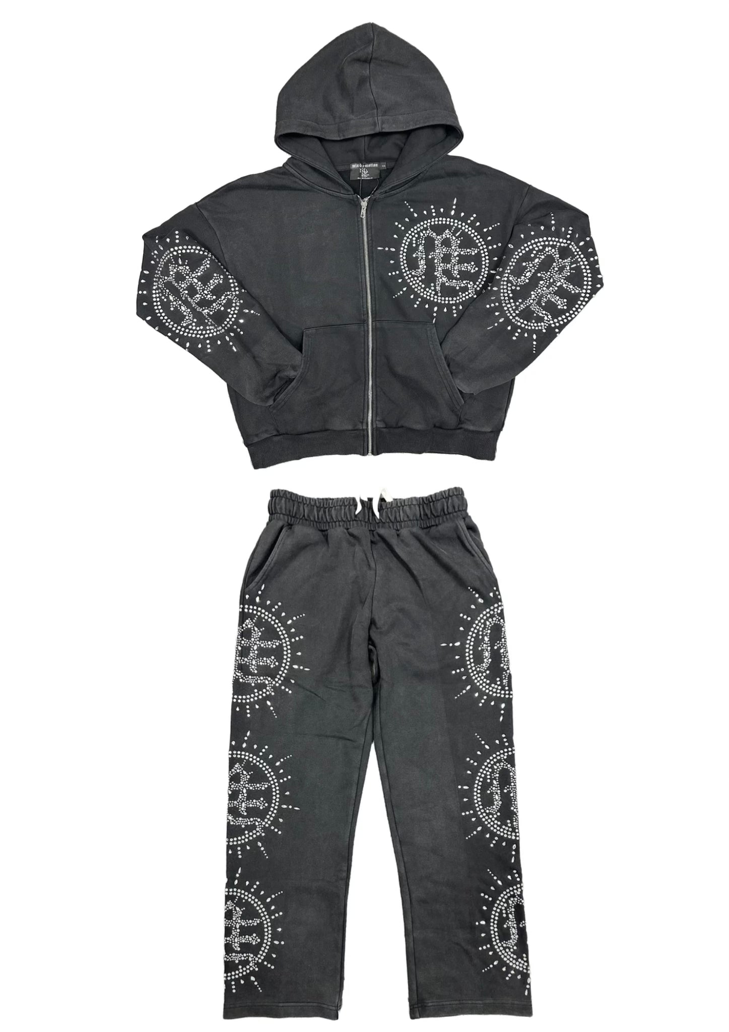 Mixed Emotion Eclipse Rhinestone Sweatsuit Grey Acid Wash